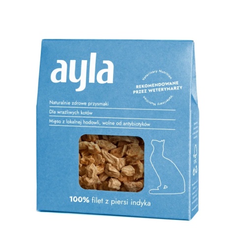 Liofilizowane przysmaki z filetu z piersi indyka AYLA to niezwykle smaczne i lekkostrawne kąski, stworzone nawet dla najbardziej wyrafinowanych psich smakoszy. To czysty, chudy filet w 100% pochodzący z polskiej hodowli bez antybiotyków, który w procesie liofilizacji zachowuje swój naturalny aromat, delikatną kruchość i pełnię wartości odżywczych. Idealny wybór dla psów wymagających diety niskotłuszczowej oraz dla właścicieli szukających najwyższej jakości, monobiałkowej przekąski.