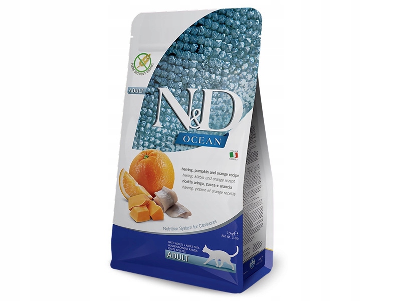 Farmina N&D Ocean dla kotów to bezzbożowa karma klasy premium, oparta na rybach jako głównym źródle białka. Zawiera wysokiej jakości mięso z ryb oceanicznych, owoce, warzywa i naturalne ekstrakty, które wspierają zdrowie skóry, sierści oraz prawidłowe funkcjonowanie układu moczowego i odpornościowego. Doskonała dla kotów z wrażliwym układem pokarmowym lub preferujących rybne smaki. Bez sztucznych dodatków i zbóż.