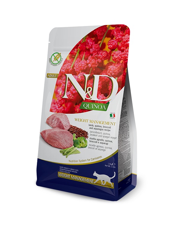 Farmina N&D Quinoa Weight Management to kompletna karma dietetyczna dla kotów zalecana w celu redukcji nadmiernej masy ciała.