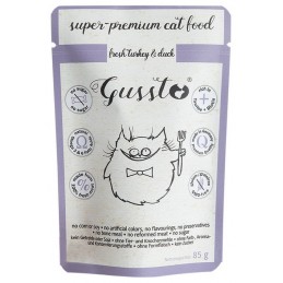 Gussto Fresh Turkey & Duck to pełnowartościowa, kompletna i znakomicie zbilansowana karma super premium z indykiem i kaczką dla kotów. Produkt zawiera dużą ilość mięsa, która idealnie odpowiada specyficznym wymaganiom pokarmowym kotów.