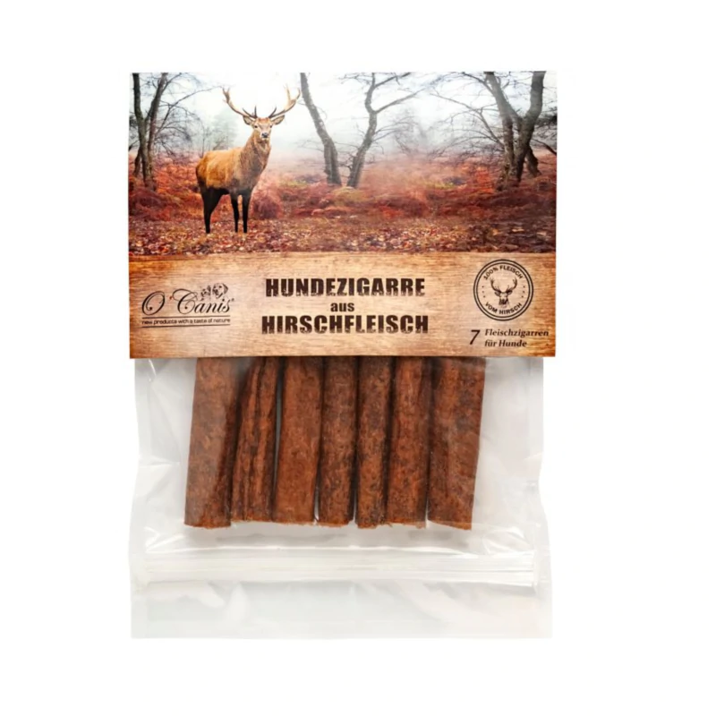 O’Canis Cygara to wyjątkowe, naturalne przysmaki mięsne dla psów, stworzone z wysokiej jakości mięsa (w zależności od wariantu: np. koń, dziczyzna, wołowina) i formowane w kształt cygar. W opakowaniu znajduje się 7 sztuk.