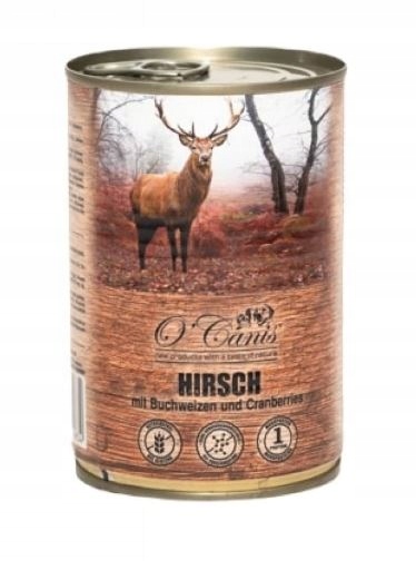 O’Canis Jeleń z kaszą gryczaną to pełnoporcjowa karma mokra przeznaczona dla dorosłych psów wszystkich ras, która wyróżnia się wysoką zawartością mięsa z jelenia (93%). Dzięki zastosowaniu jednego źródła białka zwierzęcego jest doskonałym wyborem dla psów na diecie eliminacyjnej, nietolerujących popularnych mięs, takich jak kurczak czy wołowina.