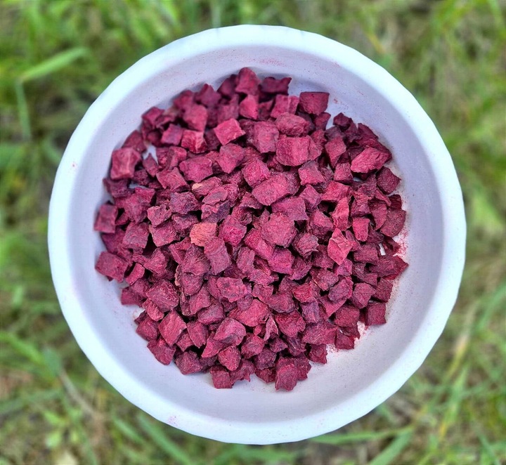 ✔ Lekkostrawny i bezpieczny dla psów z alergiami Dzięki procesowi liofilizacji burak zachowuje pełnię wartości odżywczych, a jednocześnie jest lekkostrawny, chrupiący i łatwy do podania. Odpowiedni dla psów z nietolerancją glutenu, zbóż czy konserwantów.
