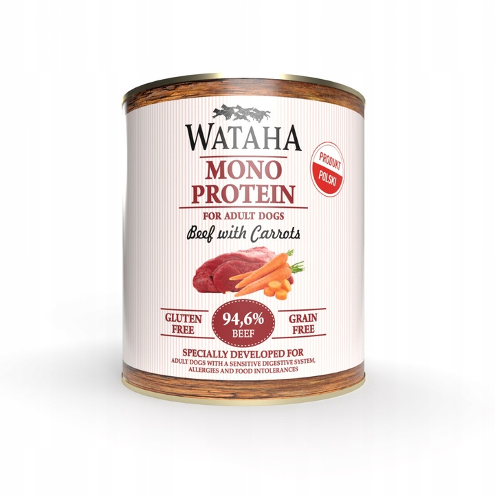Mokra karma Wataha to linia produktów dla psów i kotów, charakteryzująca się wysoką zawartością mięsa (nawet do 94,6%) i brakiem zbóż, konserwantów oraz sztucznych dodatków. Karmy te są dostępne w wariantach monobiałkowych, co jest korzystne dla zwierząt z alergiami lub wrażliwym układem pokarmowym. Konsystencja pasztetu ułatwia spożywanie, a wysoka wilgotność zapewnia dodatkowe nawodnienie