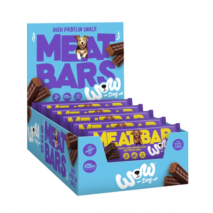 Przekąska o wyjątkowym smaku! WOW DOG Meat Bar z mięsa jelenia i jagnięciny rozpieści Twojego psa prawdziwym mięsem i dostarczy mu dodatkowej porcji energii.